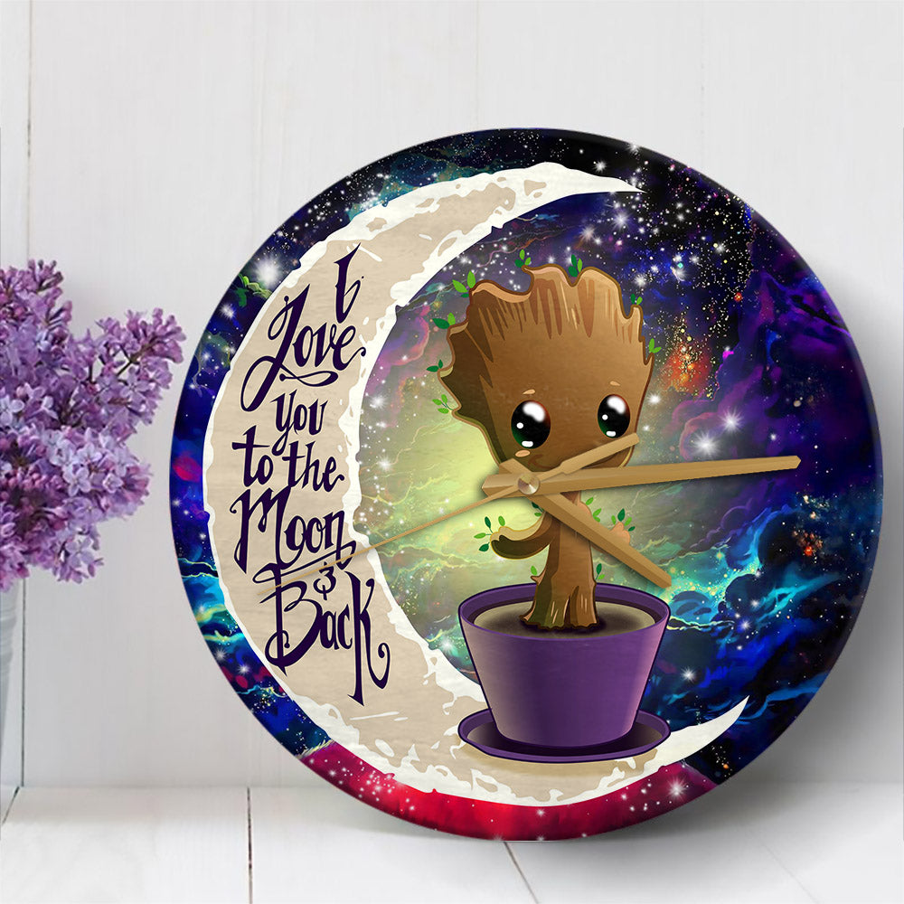Baby Groot Love You To The Moon Galaxy Wood Wall Clock