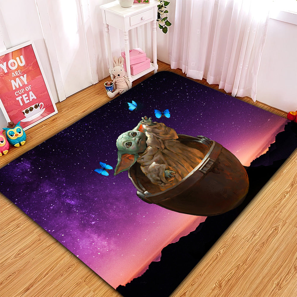 Baby Yoda Galaxy Butterfly Rug Carpet Rug Home Room Decor