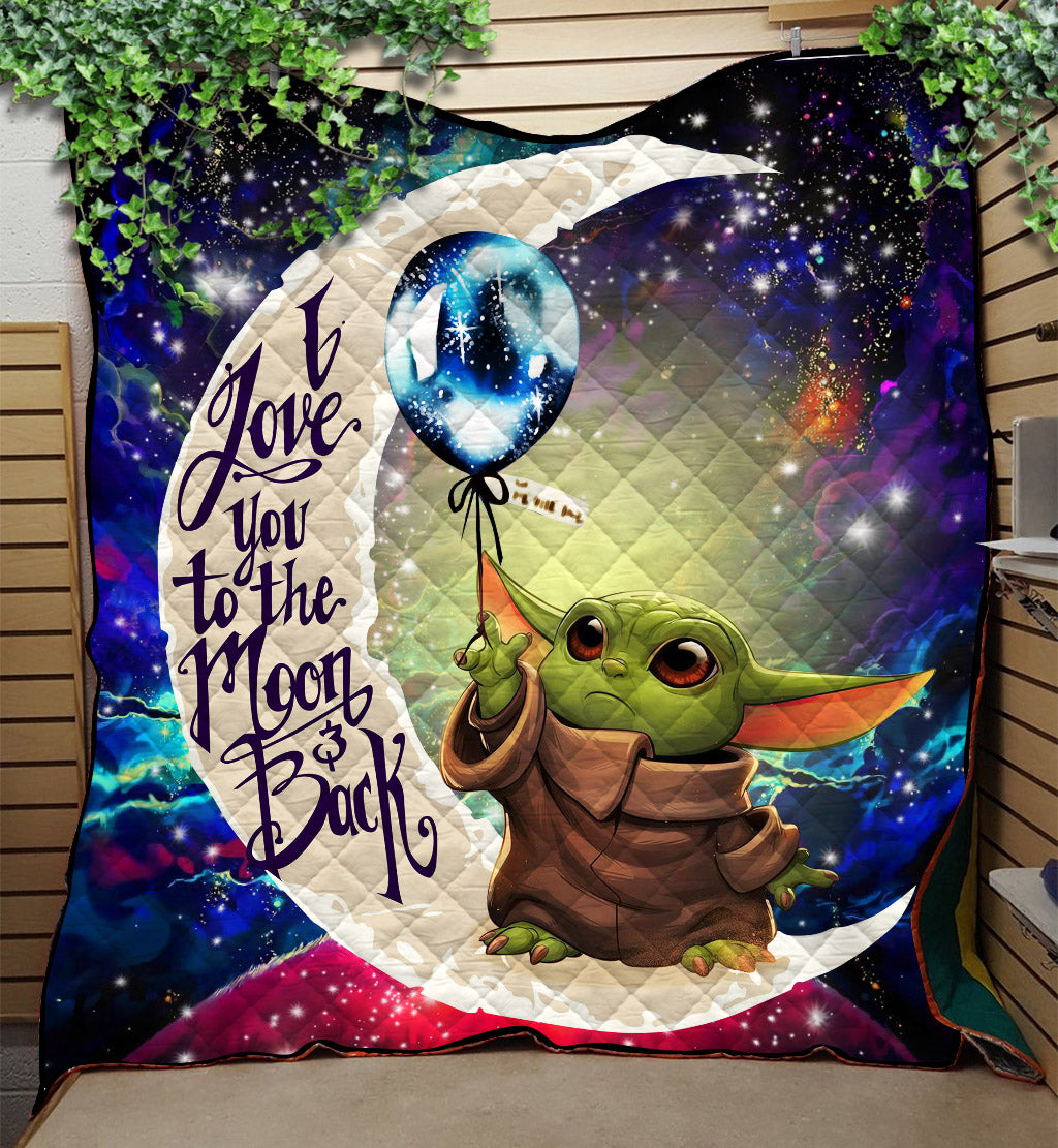 Baby Yoda Love You To The Moon Galaxy Quilt Blanket