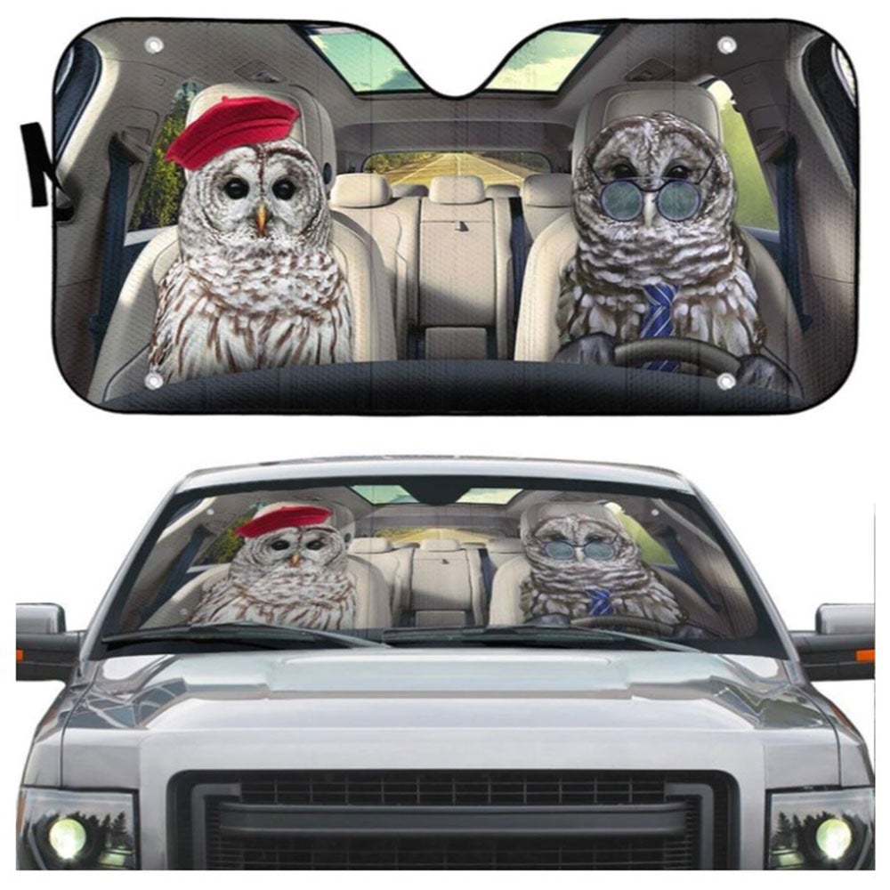 Barred Owls Couple Car Auto Sun Shades Windshield Accessories Decor Gift