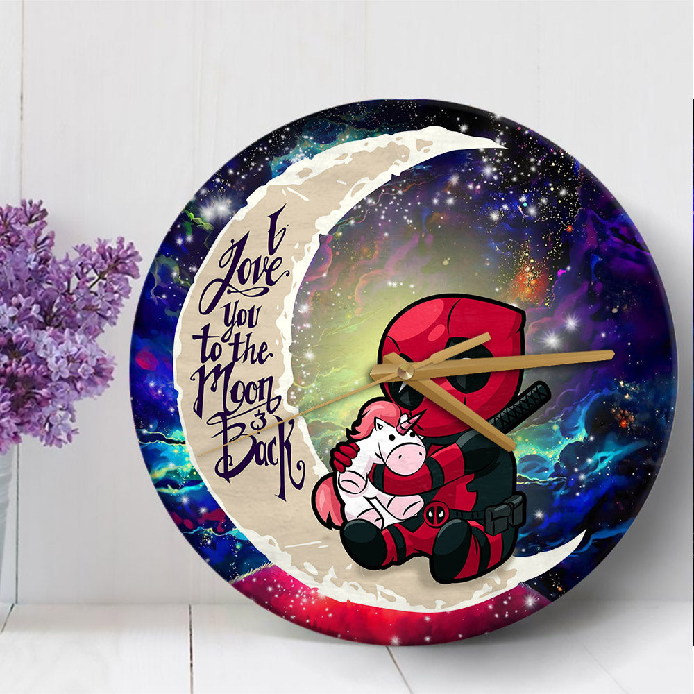 Chibi Deadpool Unicorn Toy Love You To The Moon Galaxy Wood Wall Clock