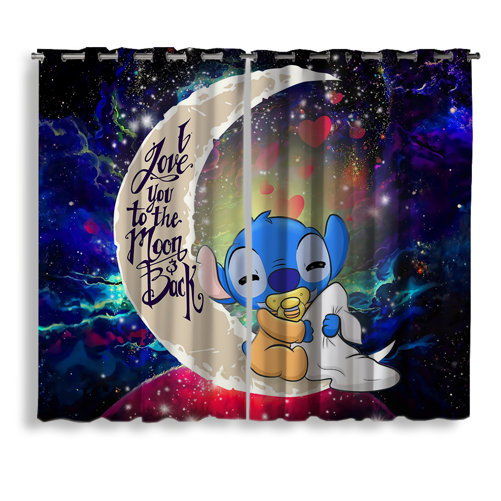 Cute Baby Stitch Sleep Love You To The Moon Galaxy Window Curtain
