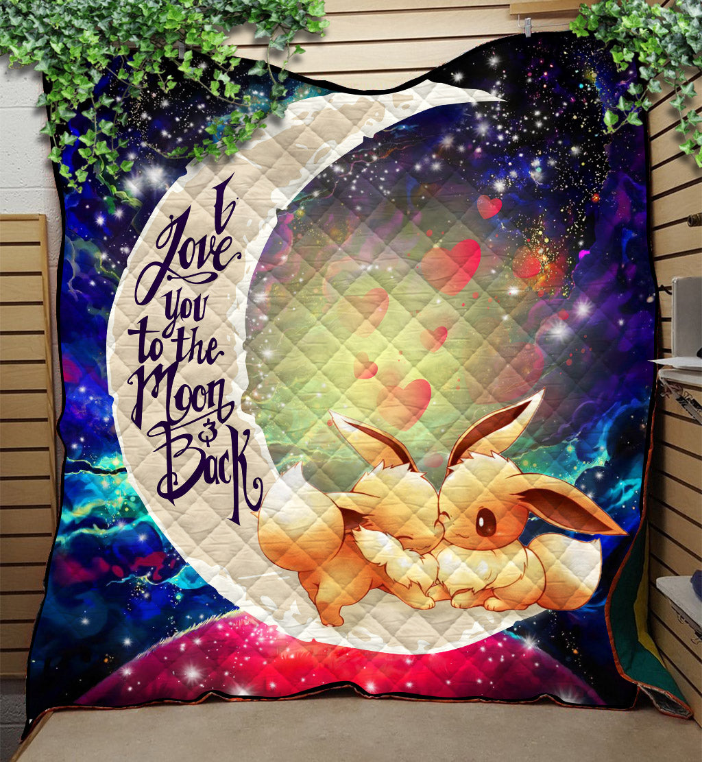 Cute Eevee Pokemon Couple Love You To The Moon Galaxy Quilt Blanket