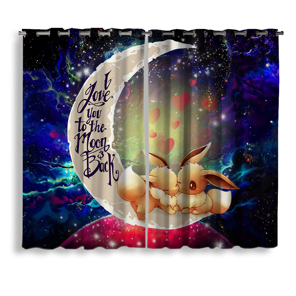 Cute Eevee Pokemon Couple Love You To The Moon Galaxy Window Curtain