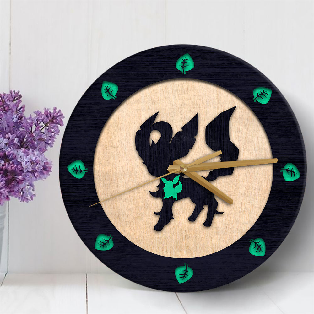 Eevee Leafeon Evolution Pokemon Ghost Wood Wall Clock