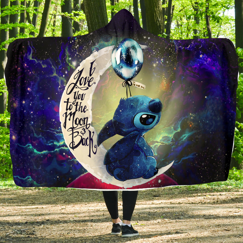 Stitch Love You To The Moon Galaxy Economy Hooded Blanket